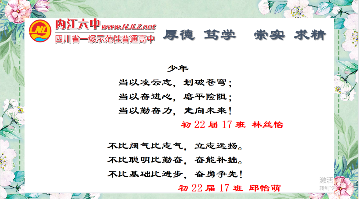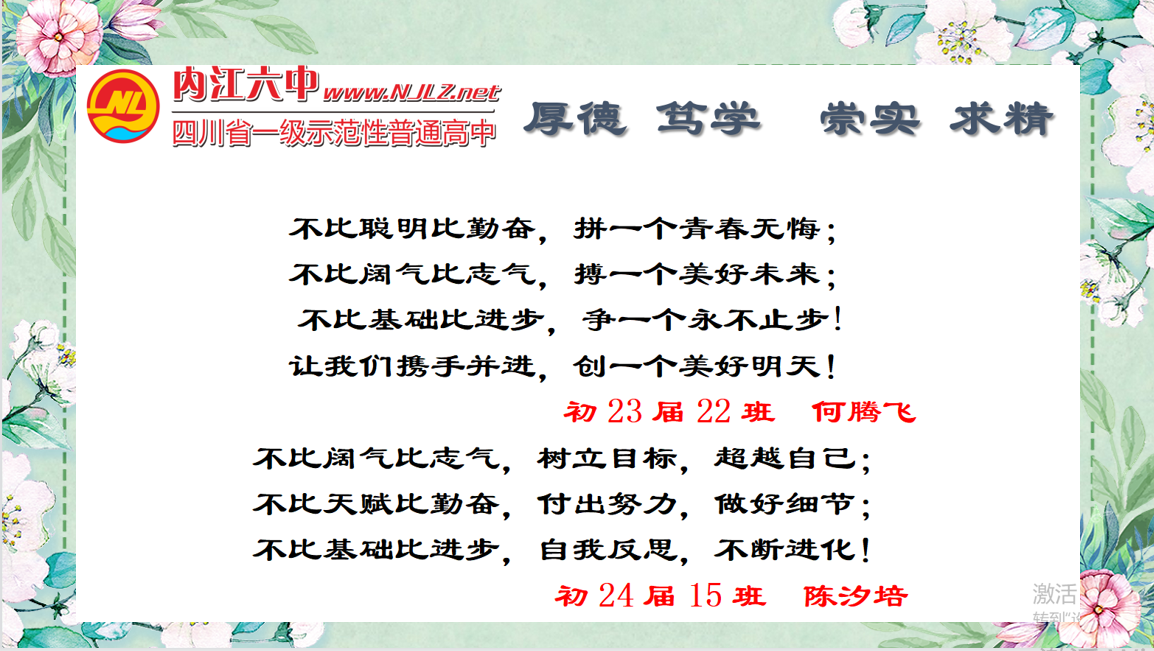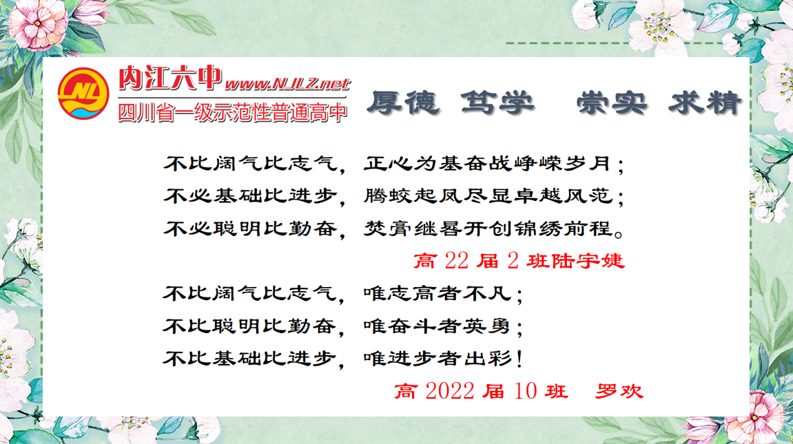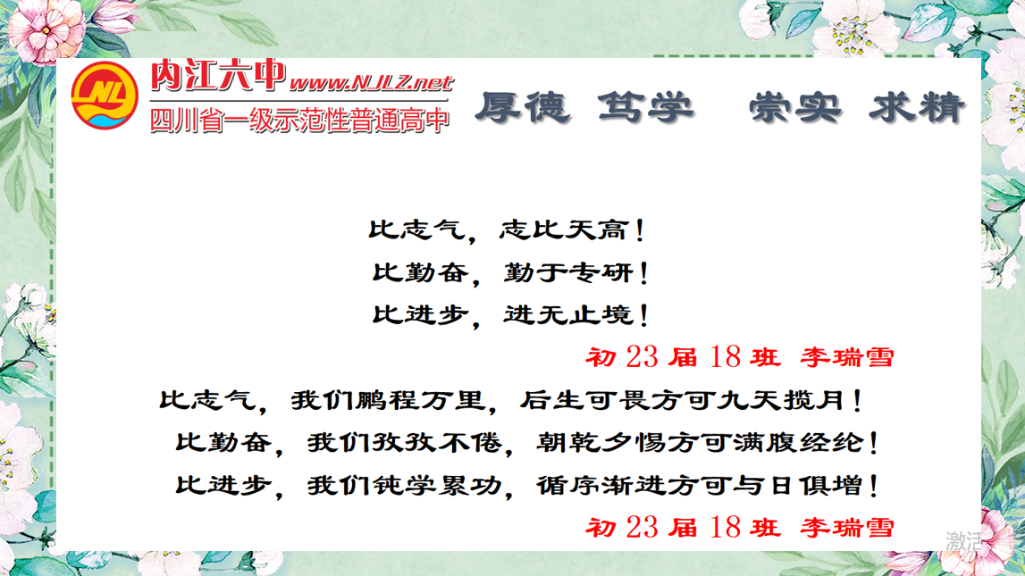 为进一步贯彻落实中共中央、国务院关于《深化新时代教育评价改革总体方案》,切实引导学生坚定理想信念、厚植爱国主义情怀、加强品德修养、增长知识见识、培养奋斗精神、增强综合素质,更有力的激发学生学习兴趣,提高学习效率。学校秉承立德树人的标准开展“三比三不比”(即不比阔气比志气、不比聪明比勤奋、不比成绩比进步)励志教育系列活动。