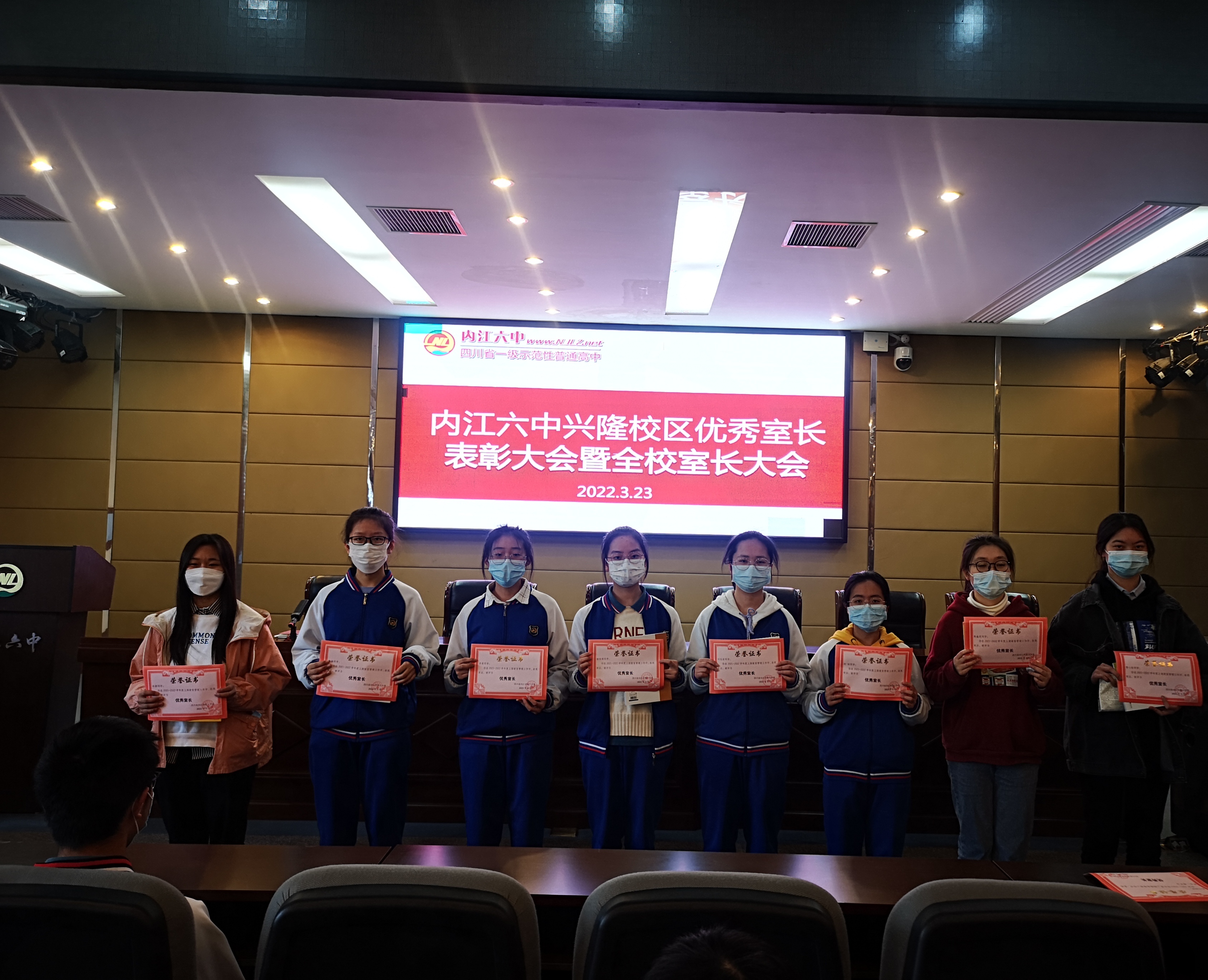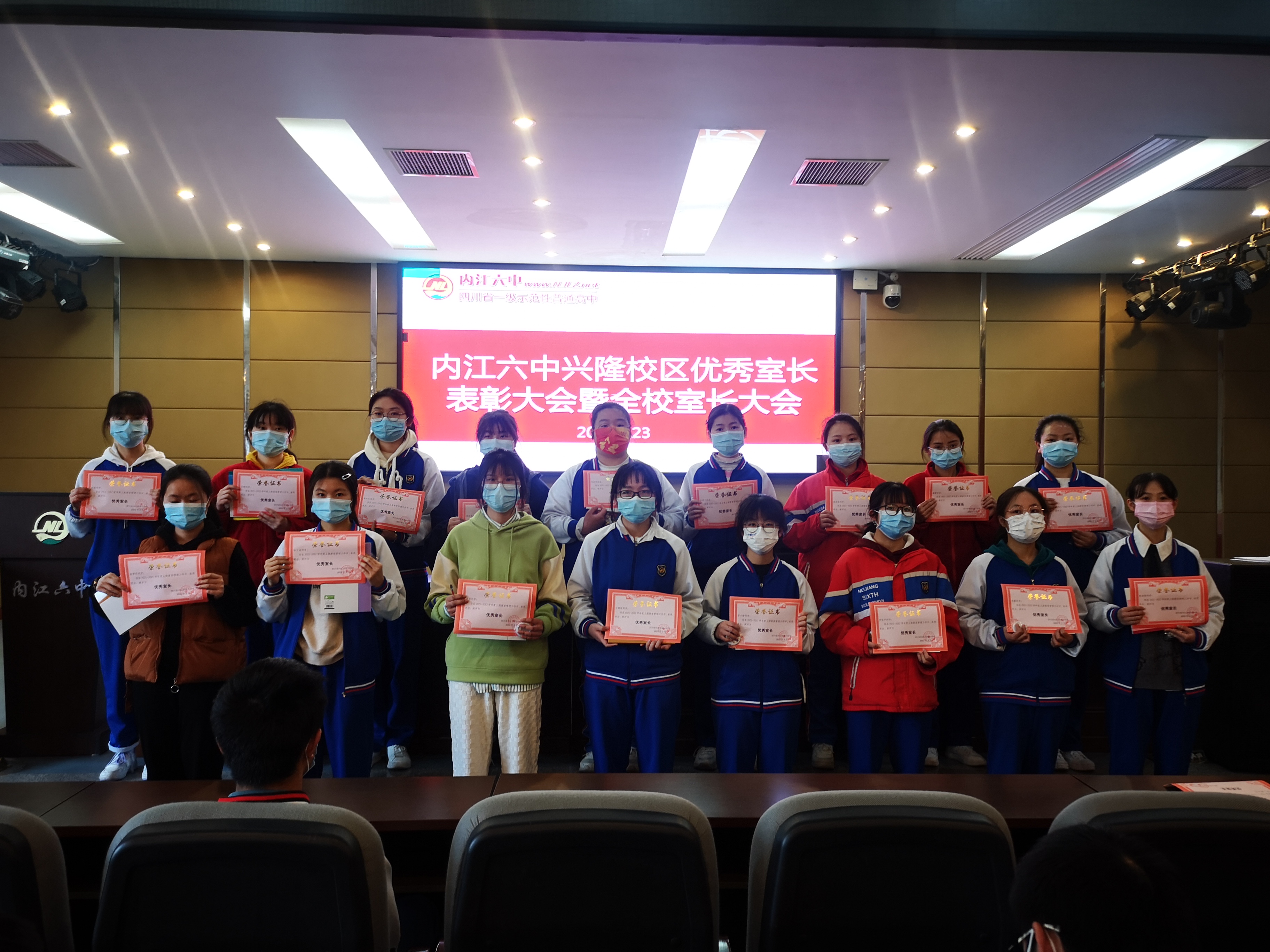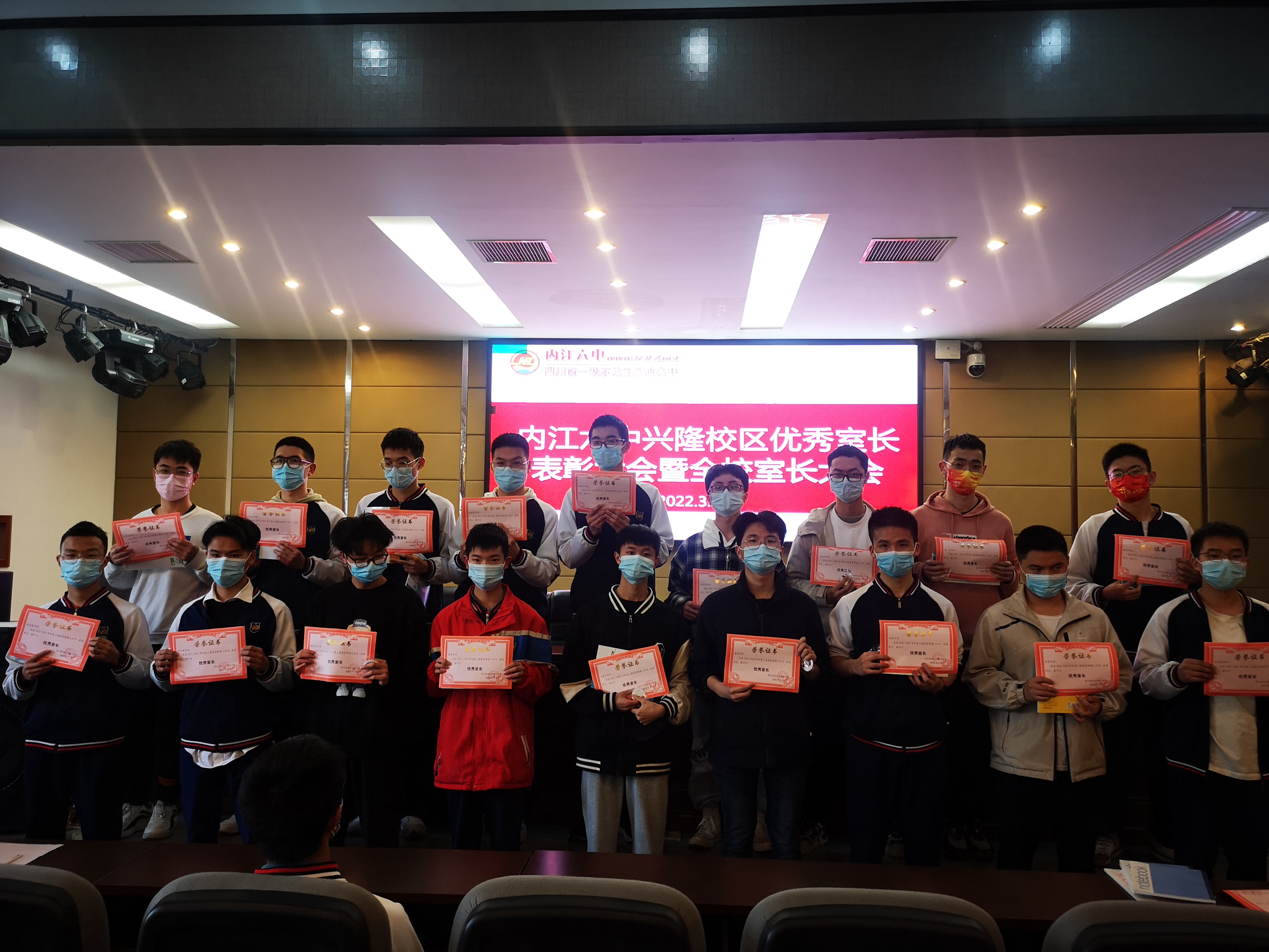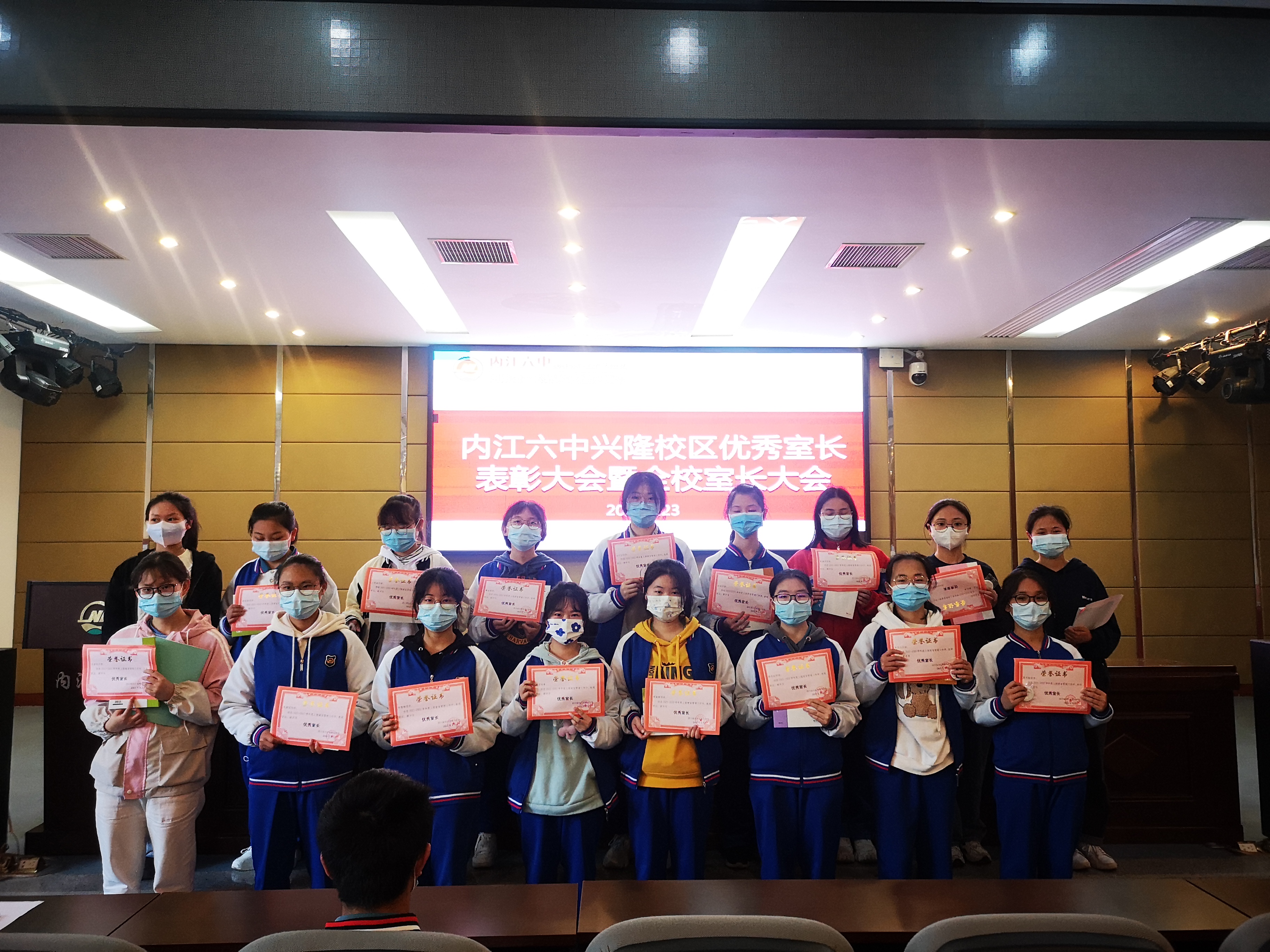 为表彰在上期寝室管理中表现突出的室长,安排好本期寝室管理工作,兴隆校区于3月23日下午在会议中心举行了优秀室长表彰暨全校室长大会。大会由政教处副主任姚鑫主持。副校长游玉旭、政教处副主任陈占波、政教处主任助理彭静老师及全校寝室室长参与了大会。