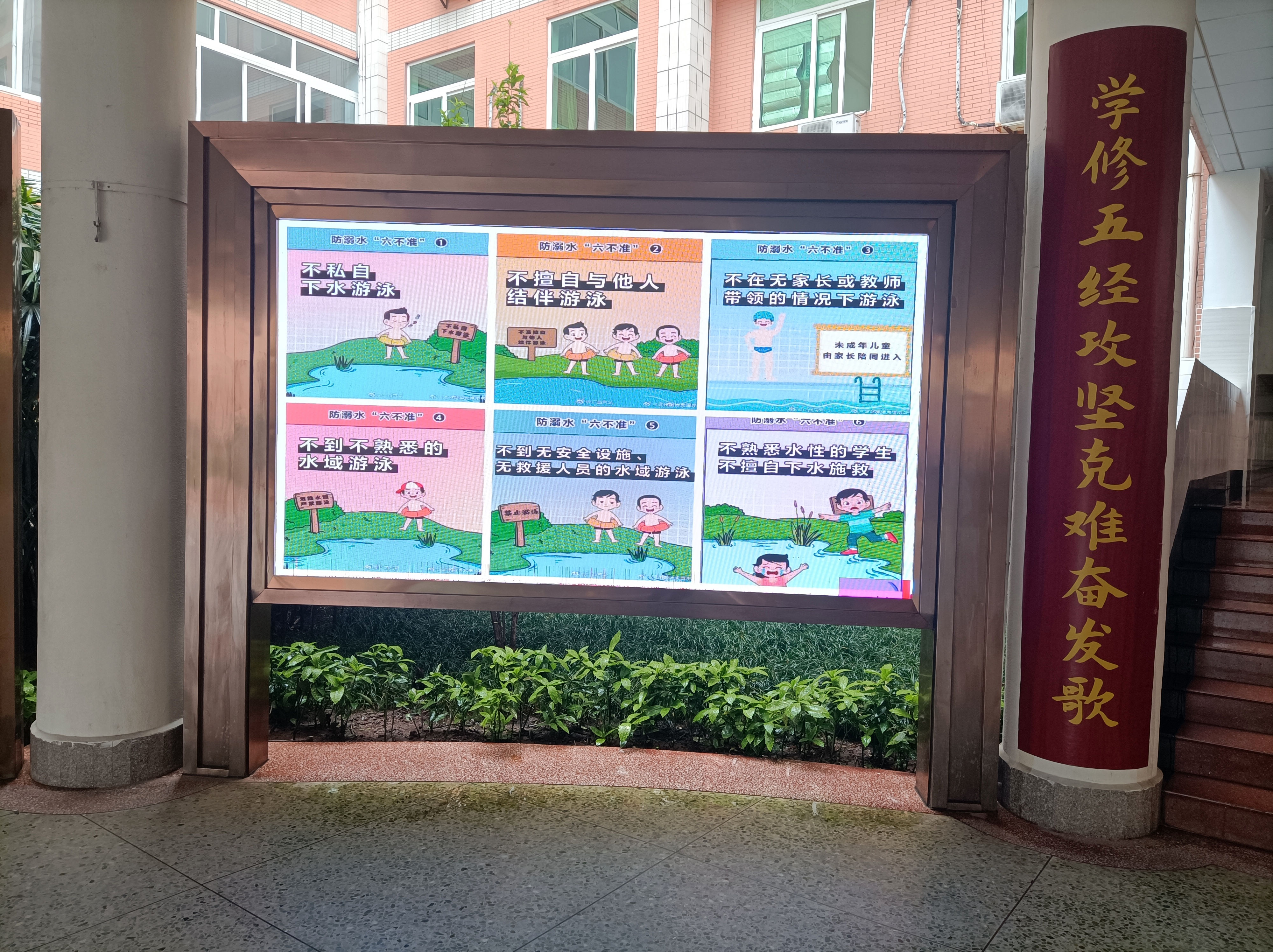 校级领导开展防溺水安全教育专题广播宣讲会,充分利用LED显示屏、国旗下演讲、手抄报、宣传橱窗等方式向学生普及防溺水安全常识,提高学生的安全意识。