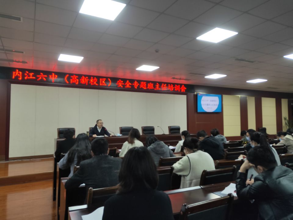 护航学生健康成长”为主题的班主任安全工作培训会。内江六中高新校区全体班主任参会,会议由吴英副校长主持。