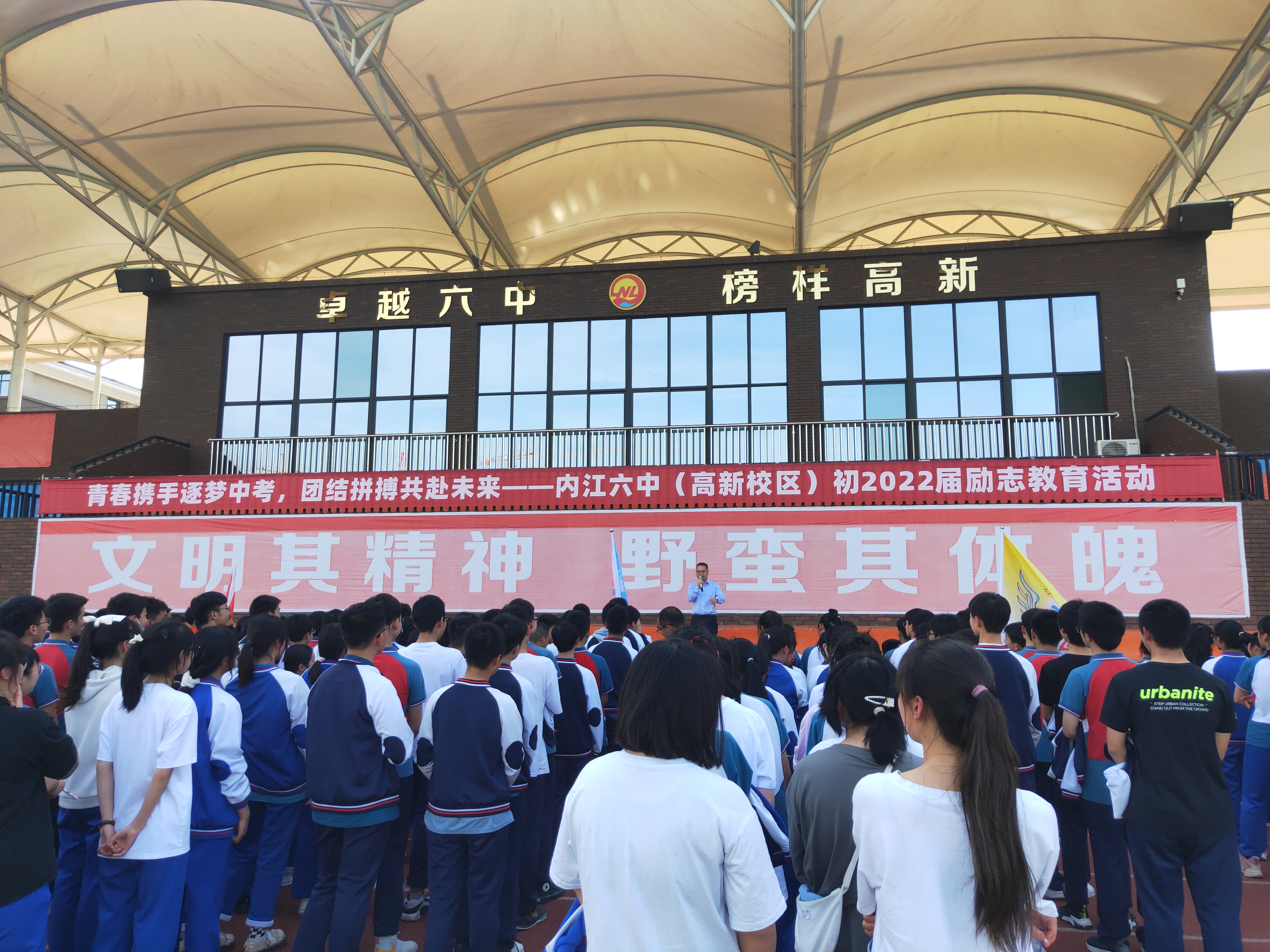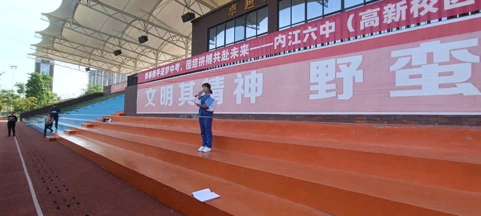 春去春来,燕离燕归,青春奋斗的号角已经吹响!2022年4月21日下午,内江六中(高新校区)在田径场开展“青春携手逐梦中考,团结拼搏共赴未来”初三励志教育活动。全体初三同学及各班班主任参加,活动由心理老师刘聪主持。