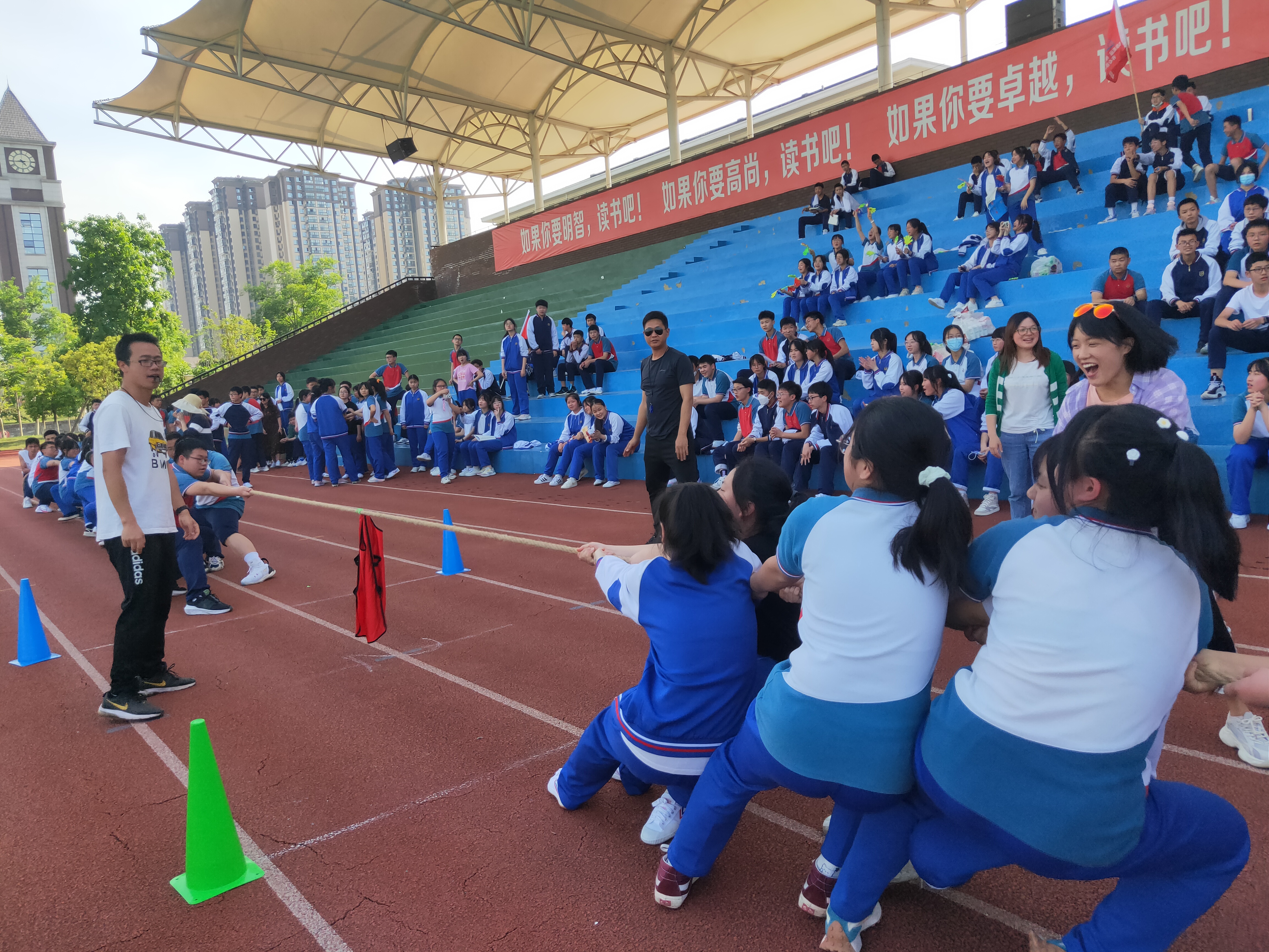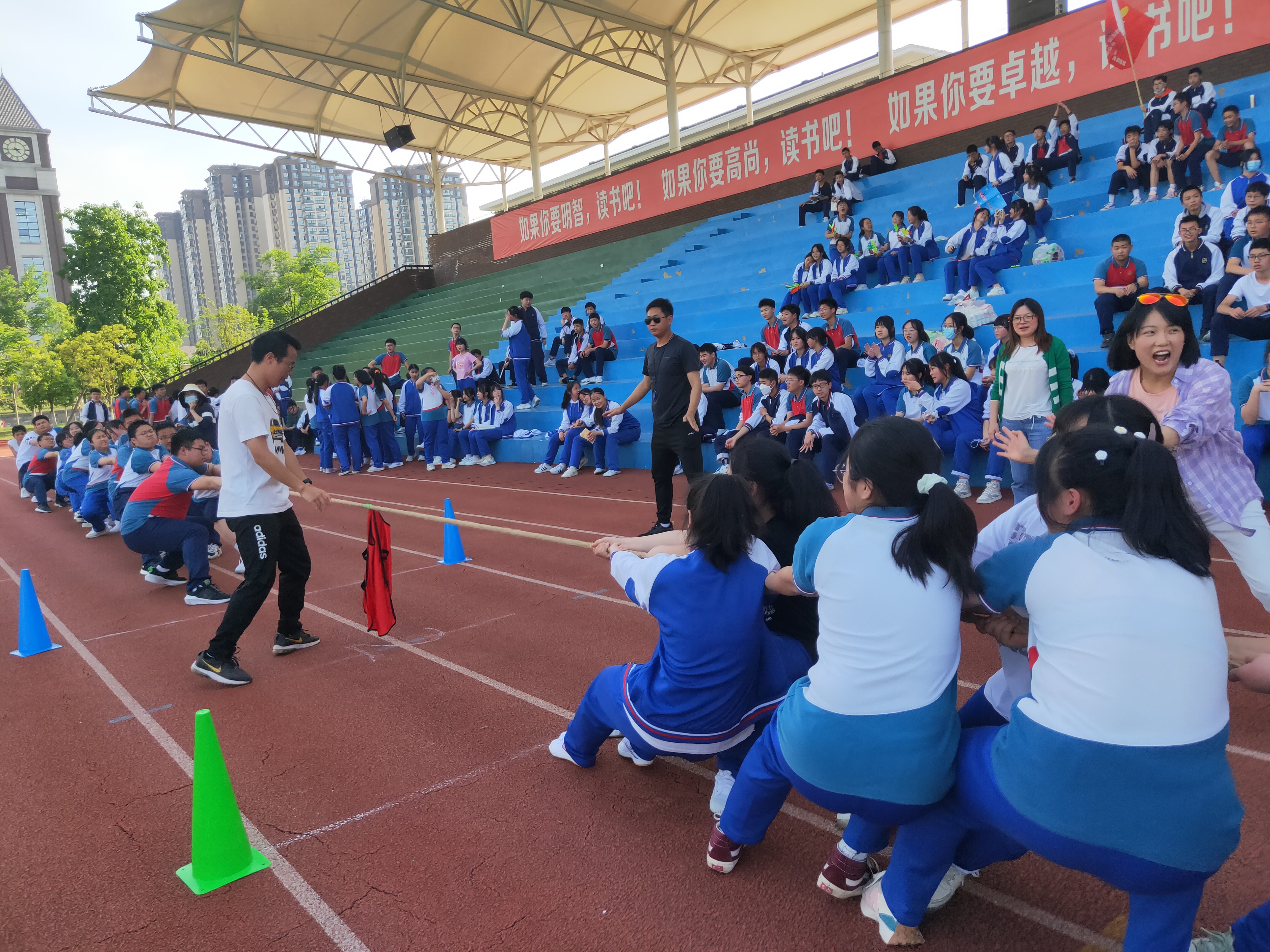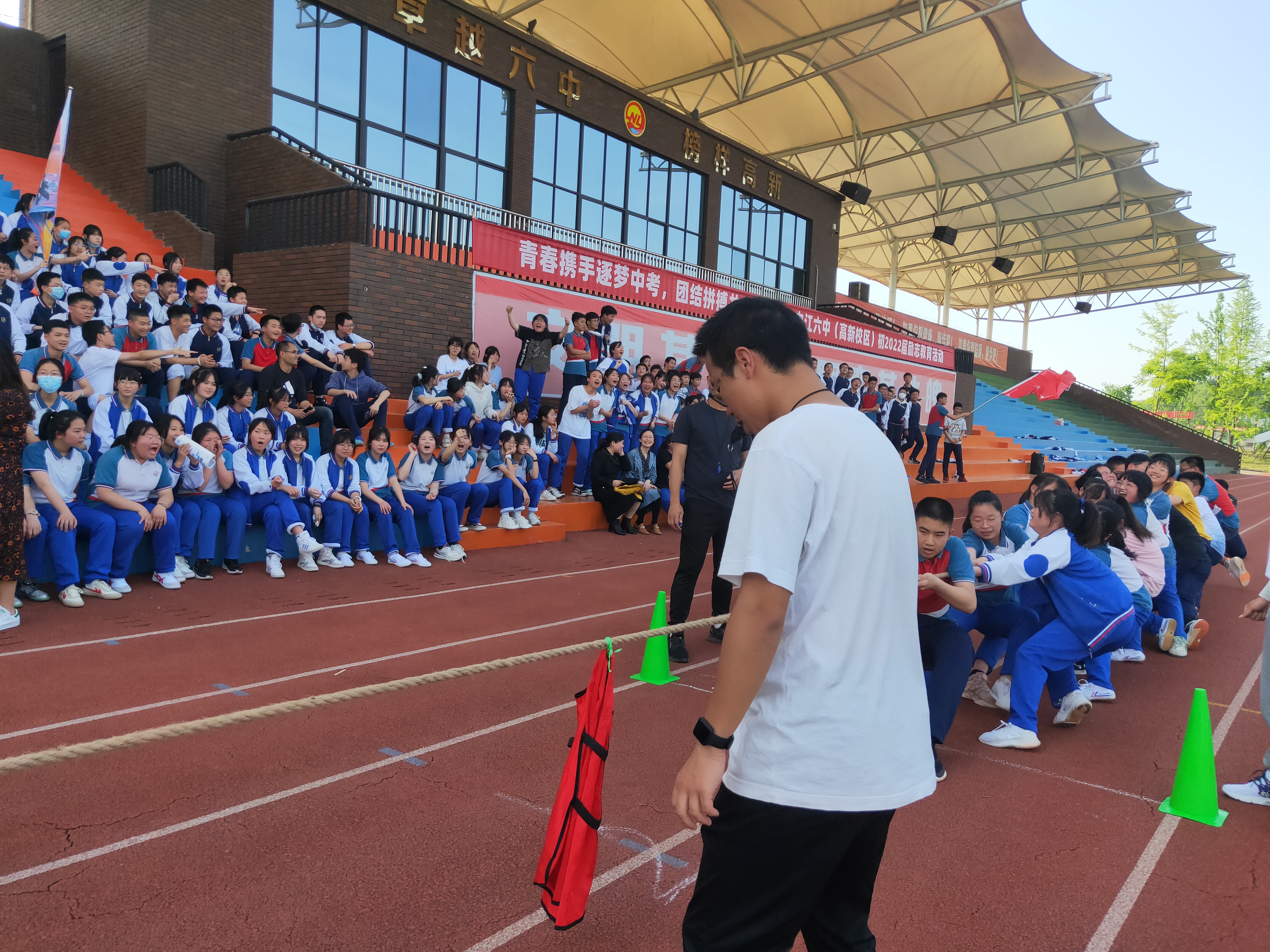 比赛结束了,但同学们奋斗拼搏的征程才刚刚开始。活动最后,学生工作部主任陈主任分享说,“此次励志教育活动,让他体会有“三”。一是方法:不管是拔河还是学习,我们都要讲究方法。学习有法,但无定法,贵在得法。同学们要找到适合自己的学习方法,冲刺中考。二是团结:因为有同学们的团结协作、坚持不懈、永不放弃,才有最后的胜利。中考亦是如此,所有同学应团结一致,互帮互助,争创辉煌。三是坚持:‘宝剑锋从磨砺出,梅花香自苦寒来’。要想收获成功,我们必须坚持付出,坚持自己的梦想,坚持才能走向成功。